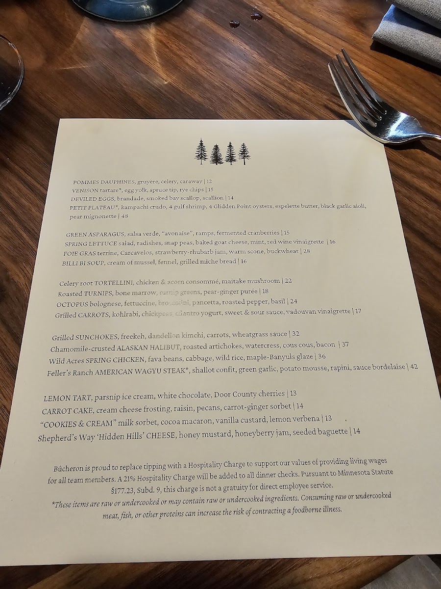 At Bûcheron Menu, every dish brings something special to the table. Nestled on Nicollet Ave in the heart of Minneapolis, this restaurant is known for its inviting atmosphere and an unforgettable selection of flavors that promise to satisfy every craving. Whether you're in the mood for something hearty or craving lighter options, you'll find plenty to explore. The menu features a creative blend of traditional and contemporary dishes, all prepared with the finest ingredients, guaranteeing a unique dining experience. From the first bite to the last, Bûcheron is all about indulging in quality, taste, and comfort. So, take a seat, relax, and dive into a culinary journey that feels just like home, with every dish carefully crafted to leave you wanting more.